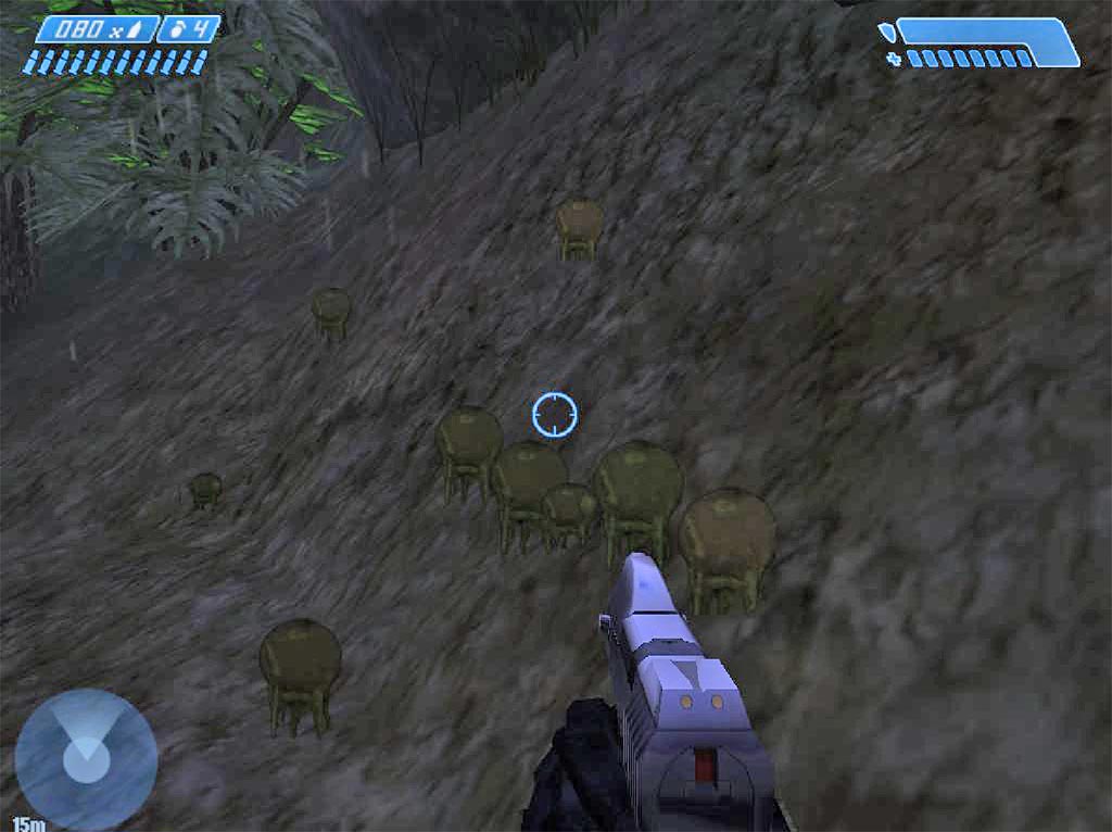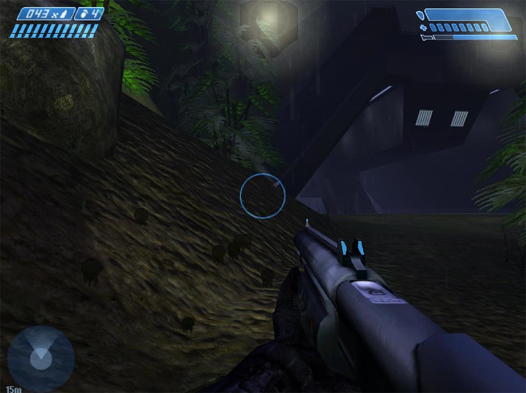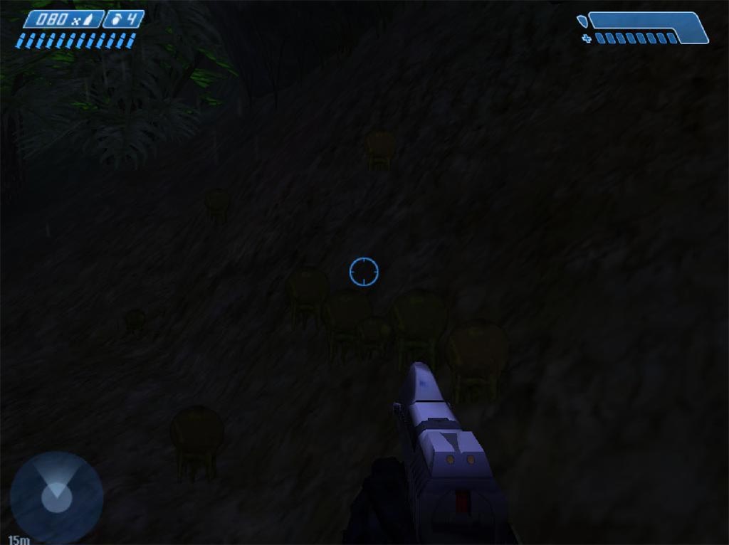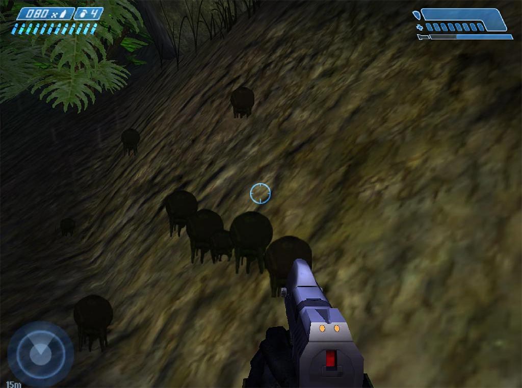Finally, I've discovered something in-game that at first glance may seem extraneous to the topic of this paper, but may prove to be one of the best pieces of evidence. This discovery begins in the level 343 Guilty Spark, playing on Halo PC, as I was exploring the outside of the level, and walking around the entrance to the underground Flood facility. Around certain bushes and trees I noticed these small bulb-shaped objects, crouching down and getting a better look at them they have a similar appearance to that of mushrooms. When I went to write this report I remembered the little guys, and decided to come back to them. Interestingly enough, on the very level where you first meet the Flood, and the fact that all the surrounding trees seem to be infected by the Flood organism, some show glowing bulging green sacs, these little mushrooms show up in various areas around the outside of the level. These could easily be a base form of the Flood, and as the fungal colony matures, the individual organisms form these mushrooms, which in turn can spawn airborne Flood spores, to contaminate and infect susceptible species. And perhaps evolve and mature into creating a Ranger/Infection form. After the Covenant unwittingly released the Flood from stasis (stasis or some form of containment) within the facility, the Flood fungal conidiospores would be able to leave the facility and take hold of the first susceptible organic matter they could find, being the surrounding plant and fauna. After establishing a colony of mushroom like structures, the Flood fungi would create a Ranger/Infection form, which is simply a colony of tinier Flood spores, acting in a cohesive fashion. This would be evidence that the Flood organism exists on a basic cellular level, and converges when necessary into larger multi-cellular structures. This is similar in principle to the biology of Covenant Hunters, where their mass is just a colony of worms held together by a suit of armor. Click for larger versions