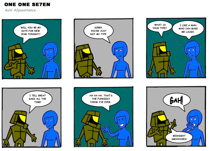 On April 30, 2003, Stuntmutt began turning in episodes of a new comic known as One One Se7en. We'll present them here, in the order in which they were submitted, as they come in. New submissions were added Monday, Wednesday, and Friday. On March 3, 2008, One One Se7en was retired from regular releases - Stunt's life got a tad too busy for 3 strips per week. (He still comes by with new content when the situation arises, however.)
