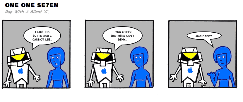 On April 30, 2003, Stuntmutt began turning in episodes of a new comic known as One One Se7en. We'll present them here, in the order in which they were submitted, as they come in. New submissions were added Monday, Wednesday, and Friday. On March 3, 2008, One One Se7en was retired from regular releases - Stunt's life got a tad too busy for 3 strips per week. (He still comes by with new content when the situation arises, however.)