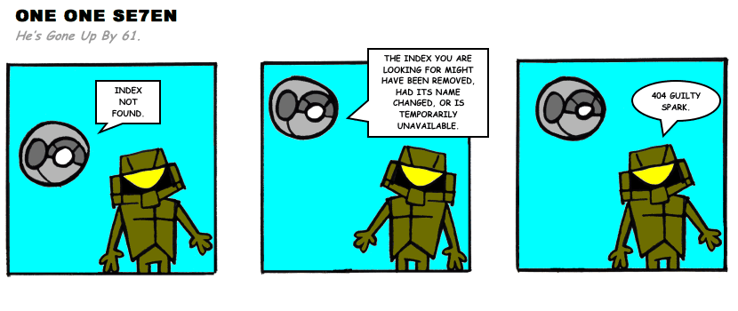 On April 30, 2003, Stuntmutt began turning in episodes of a new comic known as One One Se7en. We'll present them here, in the order in which they were submitted, as they come in. New submissions were added Monday, Wednesday, and Friday. On March 3, 2008, One One Se7en was retired from regular releases - Stunt's life got a tad too busy for 3 strips per week. (He still comes by with new content when the situation arises, however.)
