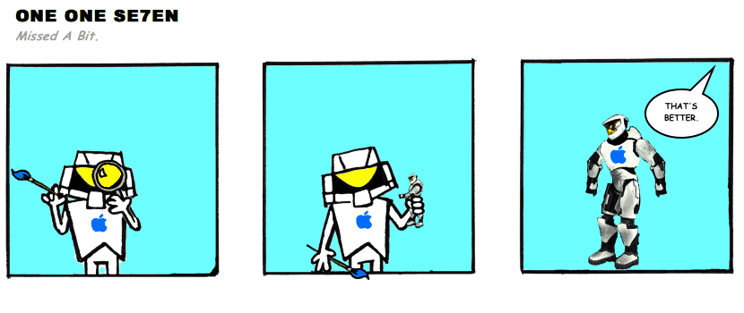 On April 30, 2003, Stuntmutt began turning in episodes of a new comic known as One One Se7en. We'll present them here, in the order in which they were submitted, as they come in. New submissions were added Monday, Wednesday, and Friday. On March 3, 2008, One One Se7en was retired from regular releases - Stunt's life got a tad too busy for 3 strips per week. (He still comes by with new content when the situation arises, however.)