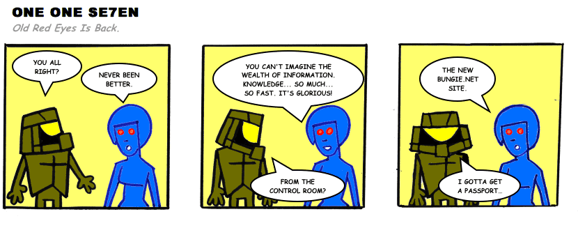 On April 30, 2003, Stuntmutt began turning in episodes of a new comic known as One One Se7en. We'll present them here, in the order in which they were submitted, as they come in. New submissions were added Monday, Wednesday, and Friday. On March 3, 2008, One One Se7en was retired from regular releases - Stunt's life got a tad too busy for 3 strips per week. (He still comes by with new content when the situation arises, however.)
