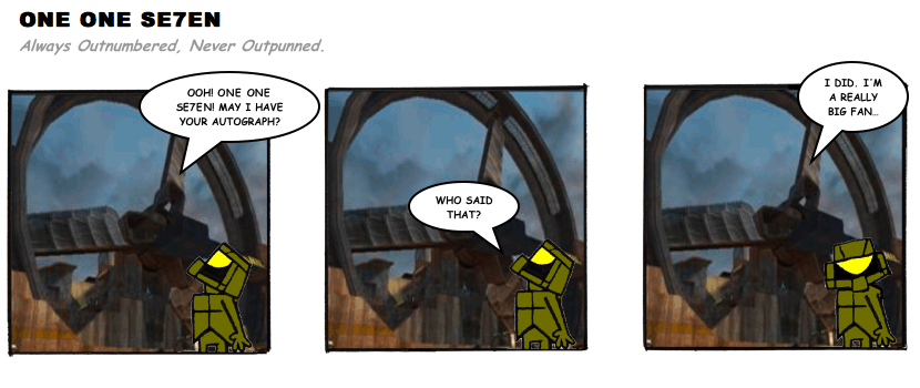 On April 30, 2003, Stuntmutt began turning in episodes of a new comic known as One One Se7en. We'll present them here, in the order in which they were submitted, as they come in. New submissions were added Monday, Wednesday, and Friday. On March 3, 2008, One One Se7en was retired from regular releases - Stunt's life got a tad too busy for 3 strips per week. (He still comes by with new content when the situation arises, however.)