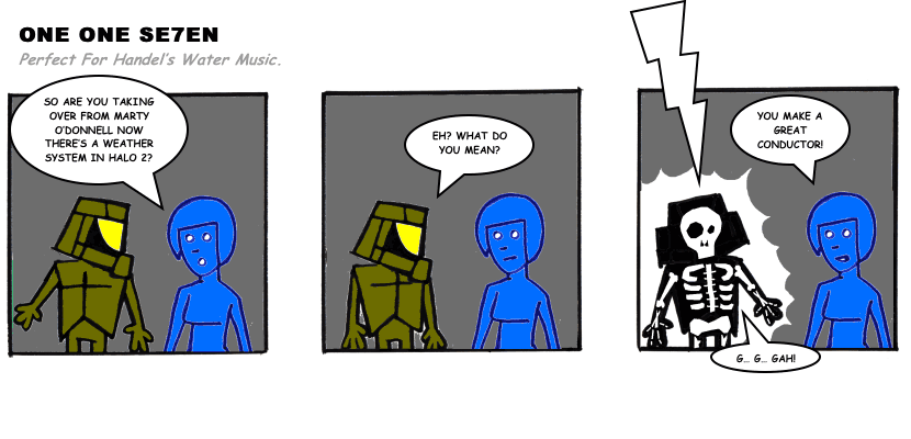 On April 30, 2003, Stuntmutt began turning in episodes of a new comic known as One One Se7en. We'll present them here, in the order in which they were submitted, as they come in. New submissions were added Monday, Wednesday, and Friday. On March 3, 2008, One One Se7en was retired from regular releases - Stunt's life got a tad too busy for 3 strips per week. (He still comes by with new content when the situation arises, however.)