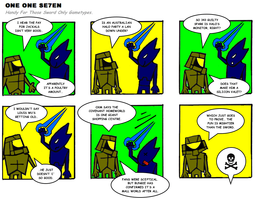 On April 30, 2003, Stuntmutt began turning in episodes of a new comic known as One One Se7en. We'll present them here, in the order in which they were submitted, as they come in. New submissions were added Monday, Wednesday, and Friday. On March 3, 2008, One One Se7en was retired from regular releases - Stunt's life got a tad too busy for 3 strips per week. (He still comes by with new content when the situation arises, however.)