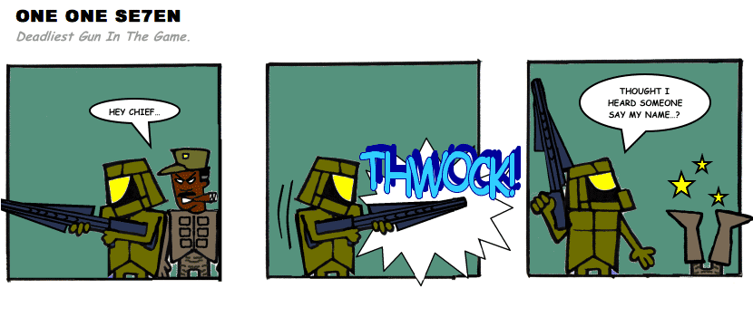 On April 30, 2003, Stuntmutt began turning in episodes of a new comic known as One One Se7en. We'll present them here, in the order in which they were submitted, as they come in. New submissions were added Monday, Wednesday, and Friday. On March 3, 2008, One One Se7en was retired from regular releases - Stunt's life got a tad too busy for 3 strips per week. (He still comes by with new content when the situation arises, however.)