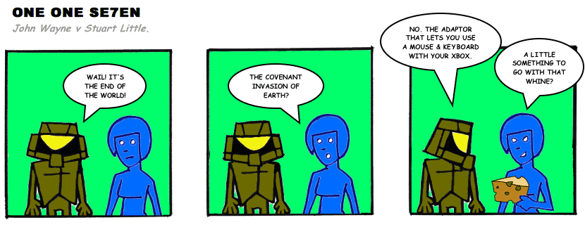 On April 30, 2003, Stuntmutt began turning in episodes of a new comic known as One One Se7en. We'll present them here, in the order in which they were submitted, as they come in. New submissions were added Monday, Wednesday, and Friday. On March 3, 2008, One One Se7en was retired from regular releases - Stunt's life got a tad too busy for 3 strips per week. (He still comes by with new content when the situation arises, however.)