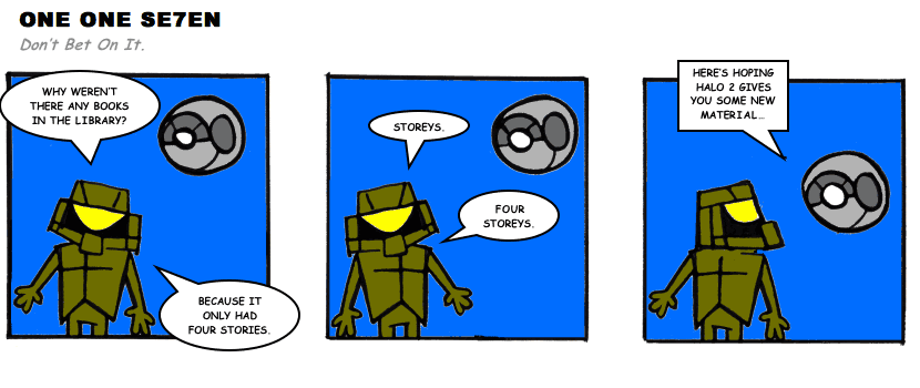 On April 30, 2003, Stuntmutt began turning in episodes of a new comic known as One One Se7en. We'll present them here, in the order in which they were submitted, as they come in. New submissions were added Monday, Wednesday, and Friday. On March 3, 2008, One One Se7en was retired from regular releases - Stunt's life got a tad too busy for 3 strips per week. (He still comes by with new content when the situation arises, however.)