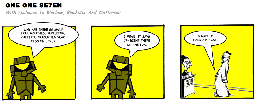 On April 30, 2003, Stuntmutt began turning in episodes of a new comic known as One One Se7en. We'll present them here, in the order in which they were submitted, as they come in. New submissions were added Monday, Wednesday, and Friday. On March 3, 2008, One One Se7en was retired from regular releases - Stunt's life got a tad too busy for 3 strips per week. (He still comes by with new content when the situation arises, however.)