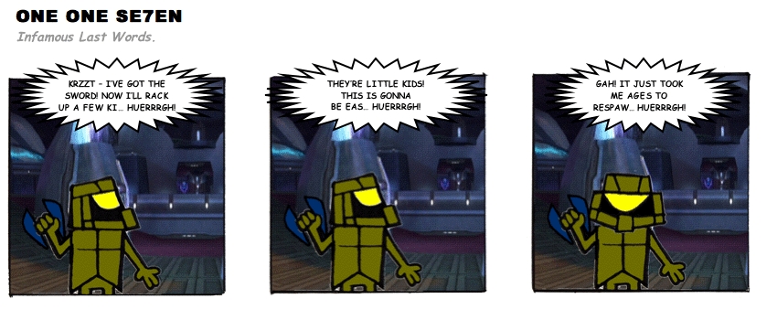 On April 30, 2003, Stuntmutt began turning in episodes of a new comic known as One One Se7en. We'll present them here, in the order in which they were submitted, as they come in. New submissions were added Monday, Wednesday, and Friday. On March 3, 2008, One One Se7en was retired from regular releases - Stunt's life got a tad too busy for 3 strips per week. (He still comes by with new content when the situation arises, however.)