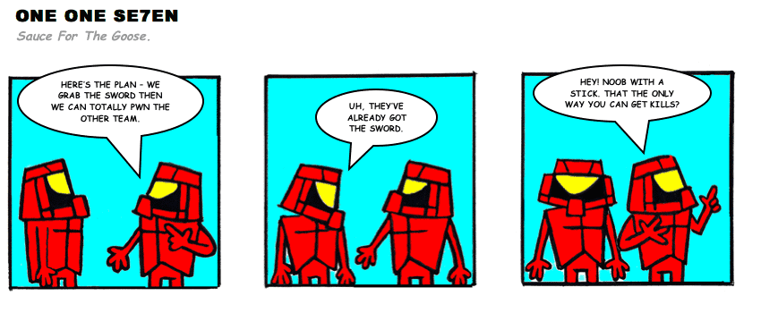 On April 30, 2003, Stuntmutt began turning in episodes of a new comic known as One One Se7en. We'll present them here, in the order in which they were submitted, as they come in. New submissions were added Monday, Wednesday, and Friday. On March 3, 2008, One One Se7en was retired from regular releases - Stunt's life got a tad too busy for 3 strips per week. (He still comes by with new content when the situation arises, however.)