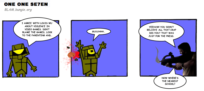 On April 30, 2003, Stuntmutt began turning in episodes of a new comic known as One One Se7en. We'll present them here, in the order in which they were submitted, as they come in. New submissions were added Monday, Wednesday, and Friday. On March 3, 2008, One One Se7en was retired from regular releases - Stunt's life got a tad too busy for 3 strips per week. (He still comes by with new content when the situation arises, however.)