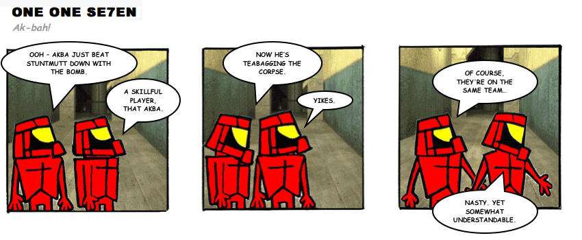 On April 30, 2003, Stuntmutt began turning in episodes of a new comic known as One One Se7en. We'll present them here, in the order in which they were submitted, as they come in. New submissions were added Monday, Wednesday, and Friday. On March 3, 2008, One One Se7en was retired from regular releases - Stunt's life got a tad too busy for 3 strips per week. (He still comes by with new content when the situation arises, however.)