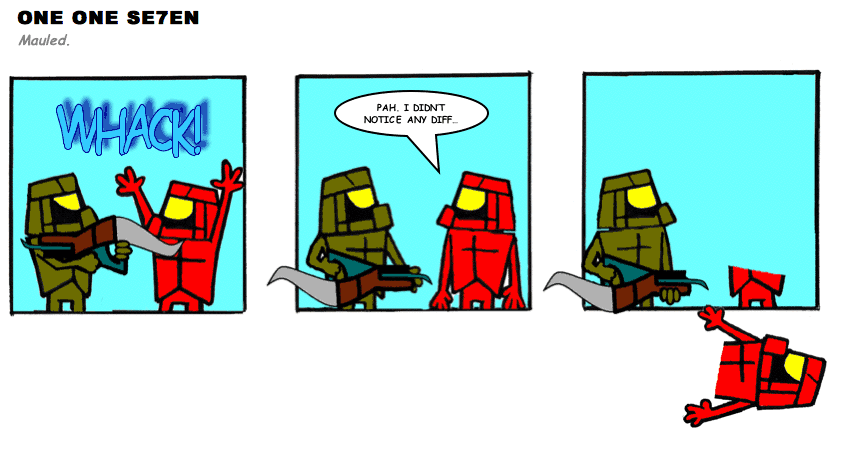 On April 30, 2003, Stuntmutt began turning in episodes of a new comic known as One One Se7en. We'll present them here, in the order in which they were submitted, as they come in. New submissions were added Monday, Wednesday, and Friday. On March 3, 2008, One One Se7en was retired from regular releases - Stunt's life got a tad too busy for 3 strips per week. (He still comes by with new content when the situation arises, however.)