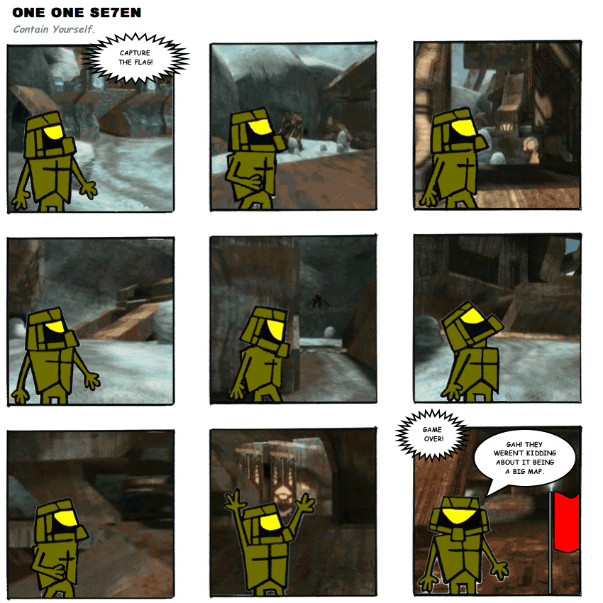On April 30, 2003, Stuntmutt began turning in episodes of a new comic known as One One Se7en. We'll present them here, in the order in which they were submitted, as they come in. New submissions were added Monday, Wednesday, and Friday. On March 3, 2008, One One Se7en was retired from regular releases - Stunt's life got a tad too busy for 3 strips per week. (He still comes by with new content when the situation arises, however.)