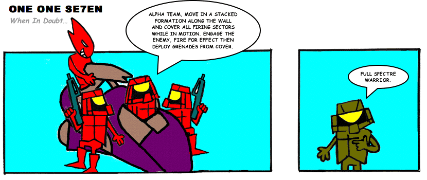 On April 30, 2003, Stuntmutt began turning in episodes of a new comic known as One One Se7en. We'll present them here, in the order in which they were submitted, as they come in. New submissions were added Monday, Wednesday, and Friday. On March 3, 2008, One One Se7en was retired from regular releases - Stunt's life got a tad too busy for 3 strips per week. (He still comes by with new content when the situation arises, however.)