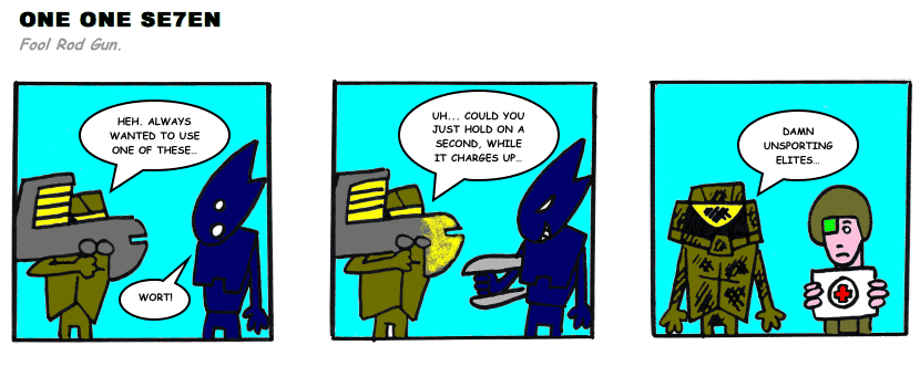 On April 30, 2003, Stuntmutt began turning in episodes of a new comic known as One One Se7en. We'll present them here, in the order in which they were submitted, as they come in. New submissions were added Monday, Wednesday, and Friday. On March 3, 2008, One One Se7en was retired from regular releases - Stunt's life got a tad too busy for 3 strips per week. (He still comes by with new content when the situation arises, however.)