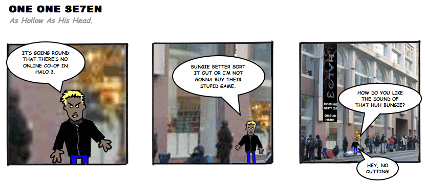 On April 30, 2003, Stuntmutt began turning in episodes of a new comic known as One One Se7en. We'll present them here, in the order in which they were submitted, as they come in. New submissions were added Monday, Wednesday, and Friday. On March 3, 2008, One One Se7en was retired from regular releases - Stunt's life got a tad too busy for 3 strips per week. (He still comes by with new content when the situation arises, however.)