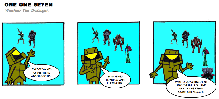 On April 30, 2003, Stuntmutt began turning in episodes of a new comic known as One One Se7en. We'll present them here, in the order in which they were submitted, as they come in. New submissions were added Monday, Wednesday, and Friday. On March 3, 2008, One One Se7en was retired from regular releases - Stunt's life got a tad too busy for 3 strips per week. (He still comes by with new content when the situation arises, however.)