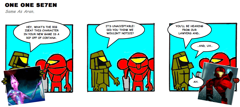On April 30, 2003, Stuntmutt began turning in episodes of a new comic known as One One Se7en. We'll present them here, in the order in which they were submitted, as they come in. New submissions were added Monday, Wednesday, and Friday. On March 3, 2008, One One Se7en was retired from regular releases - Stunt's life got a tad too busy for 3 strips per week. (He still comes by with new content when the situation arises, however.)