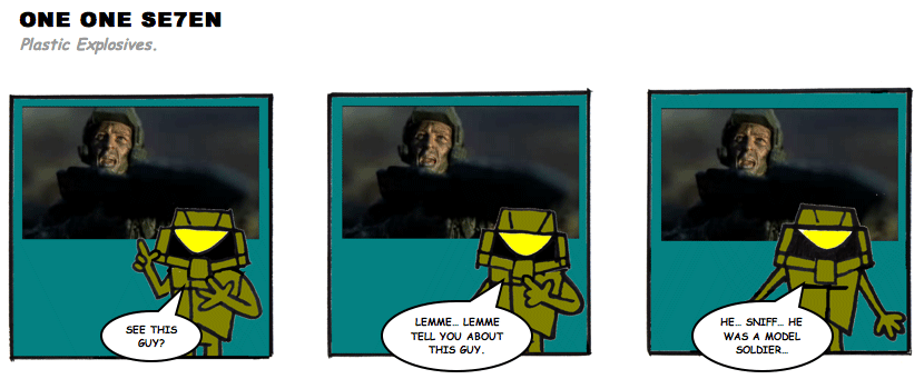 On April 30, 2003, Stuntmutt began turning in episodes of a new comic known as One One Se7en. We'll present them here, in the order in which they were submitted, as they come in. New submissions were added Monday, Wednesday, and Friday. On March 3, 2008, One One Se7en was retired from regular releases - Stunt's life got a tad too busy for 3 strips per week. (He still comes by with new content when the situation arises, however.)