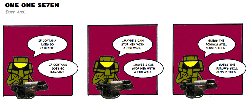 On April 30, 2003, Stuntmutt began turning in episodes of a new comic known as One One Se7en. We'll present them here, in the order in which they were submitted, as they come in. New submissions were added Monday, Wednesday, and Friday. On March 3, 2008, One One Se7en was retired from regular releases - Stunt's life got a tad too busy for 3 strips per week. (He still comes by with new content when the situation arises, however.)