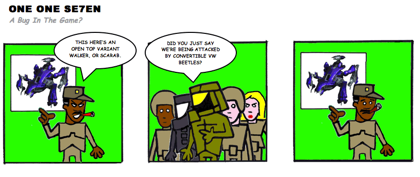 On April 30, 2003, Stuntmutt began turning in episodes of a new comic known as One One Se7en. We'll present them here, in the order in which they were submitted, as they come in. New submissions were added Monday, Wednesday, and Friday. On March 3, 2008, One One Se7en was retired from regular releases - Stunt's life got a tad too busy for 3 strips per week. (He still comes by with new content when the situation arises, however.)