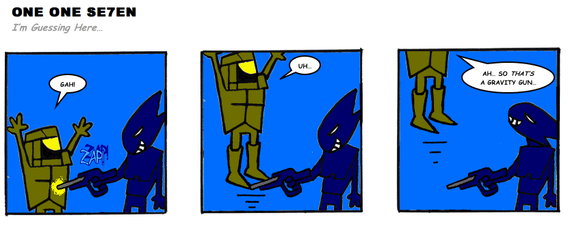 On April 30, 2003, Stuntmutt began turning in episodes of a new comic known as One One Se7en. We'll present them here, in the order in which they were submitted, as they come in. New submissions were added Monday, Wednesday, and Friday. On March 3, 2008, One One Se7en was retired from regular releases - Stunt's life got a tad too busy for 3 strips per week. (He still comes by with new content when the situation arises, however.)