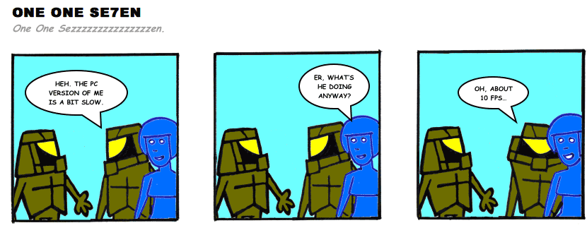 On April 30, 2003, Stuntmutt began turning in episodes of a new comic known as One One Se7en. We'll present them here, in the order in which they were submitted, as they come in. New submissions were added Monday, Wednesday, and Friday. On March 3, 2008, One One Se7en was retired from regular releases - Stunt's life got a tad too busy for 3 strips per week. (He still comes by with new content when the situation arises, however.)