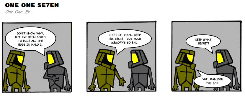 On April 30, 2003, Stuntmutt began turning in episodes of a new comic known as One One Se7en. We'll present them here, in the order in which they were submitted, as they come in. New submissions were added Monday, Wednesday, and Friday. On March 3, 2008, One One Se7en was retired from regular releases - Stunt's life got a tad too busy for 3 strips per week. (He still comes by with new content when the situation arises, however.)