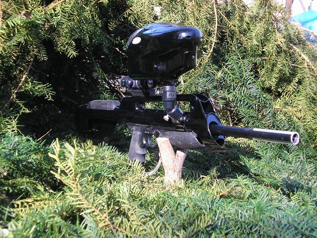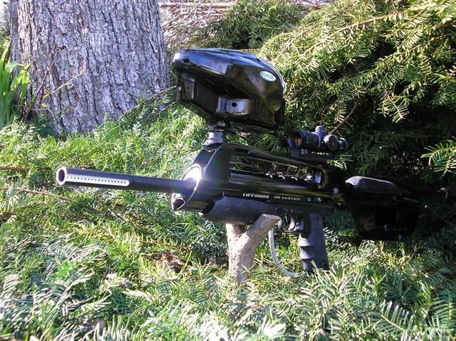 Paintball, Halo Style Occasionally, the subject of paintball guns comes up in our forum, and the Tippman Model 98 is held up as a classic. True Dark 1ES found a company called Engler Custom Paintball Guns that has taken this gun and modified it to look like something much more familiar to Halo fans. The page is broken, so actually ordering it might be difficult... but it's the last gun on the page. Scroll down to the bottom for a look - and if the price isn't totally out of range for you, you could try email; hit the 'BACK' link at the top of the page, then the 'Contact Us' link at the top of the resulting page. Update: looks like it was mentioned before - this was the earliest reference I could find. I must say, though, the new pics do it far more justice. Update, late 2008: Engler has completely changed its website; the original page we discussed in this post is still archived on the Wayback Machine, but in case the pictures eventually die, we've grabbed local copies (one | two). (Louis Wu 12:14:23 UTC) (permalink)