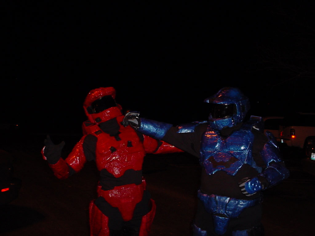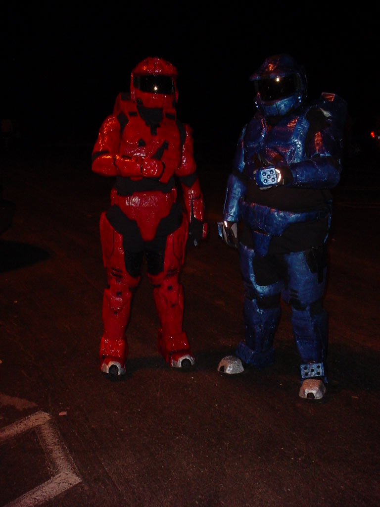 I bet they could ebay those for a lot. Marty Wells sent along a couple of pictures (this one and this one) showing 2 months of work for the Halloween costumes they wore last night, a "fun night of costume contests and bar hopping." The original filename of the first one was "My name is Michael J Caboose and I hate BABIES.JPG" - do you think they're RvB fans? Pretty nice work! (Louis Wu 11:56:50 UTC) (permalink)