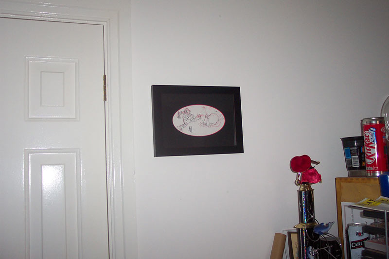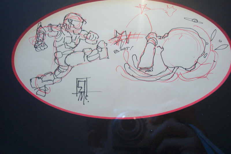 Rockin'. Gavin Free, better known as Gavino over at Red vs Blue, was the proud winner of Lorraine McLees' Fight the Flood sketch in the recent Blow Me Away charity auction. The first round of shipments went out a couple of days ago (Bungie, specifically Jeff Todd, Alta's assistant, was ASTOUNDINGLY fast in the packing/shipping of these; the unshipped items are due to lack of info we've asked for from the buyers, or (in a couple of cases) lack of payment so far) - and Gavin sent along photos of his prize: Once again - to everyone who participated in this event... our heartfelt thanks for your help in the hurricane relief effort! And Gav... enjoy. ;) (Louis Wu 19:47:29 UTC) (permalink)