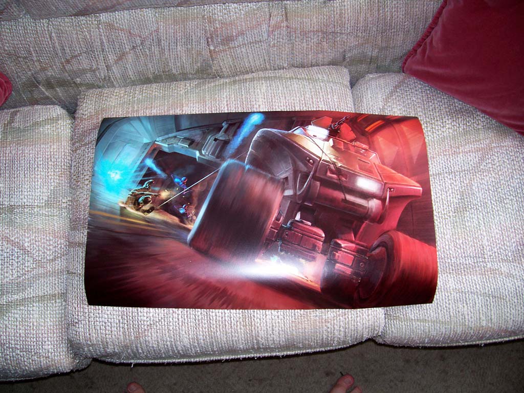 Contest Winnings He's not the first to receive one - but he IS the first to send us a picture. Laird was one of the poster winners in our E3 contest - and it looks like the first thing he did was unroll it from its tube and snap a photo. He's looking forward to getting it framed - and I agree, it should look incredible on the wall! (Louis Wu 19:12:37 UTC) (permalink)