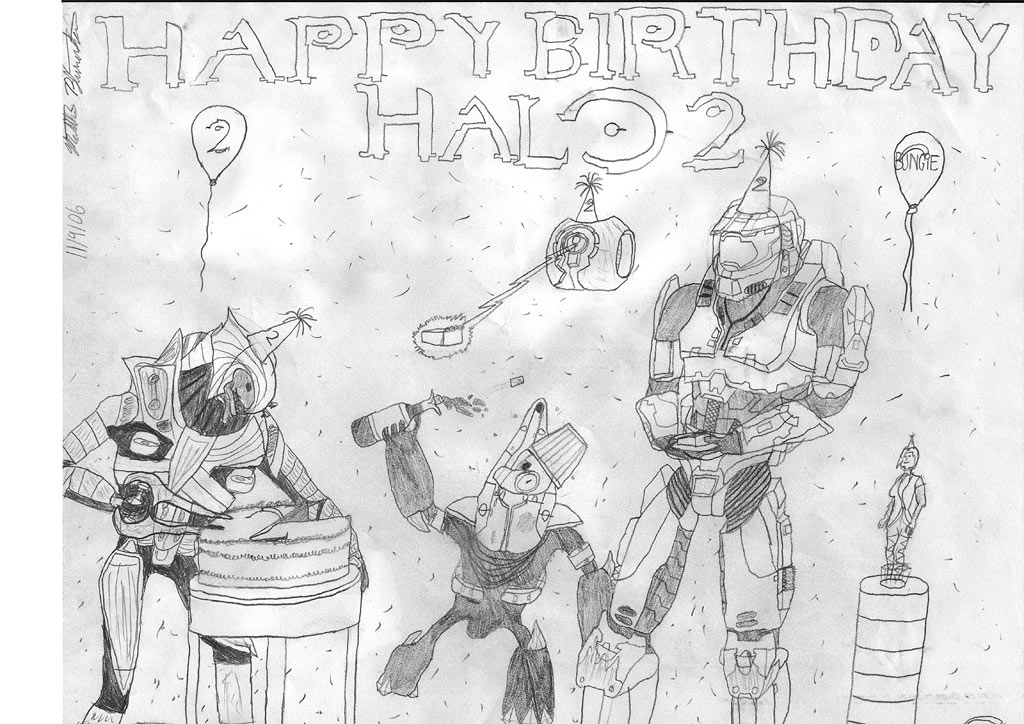 Happy Birthday, Halo 2! Today is the second anniversary of the release of Halo 2 - and fans want to say 'Happy Birthday!' Black Guard collected shots from around the web of Halo cakes, and Mattbluhalofan actually created a special pic just for today (155k). Play some Halo 2 today to celebrate! (Louis Wu 16:12:02 UTC) (permalink)