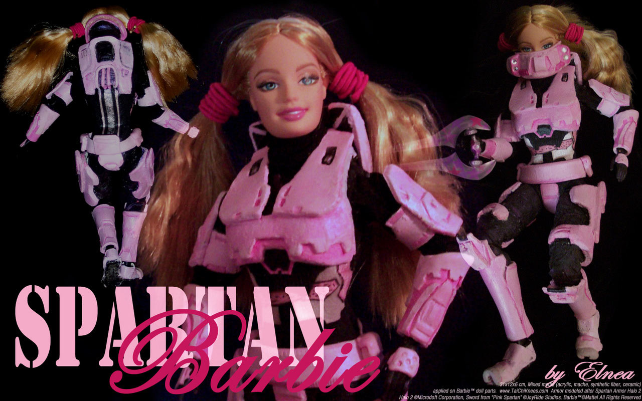 A Travesty Against Nature - but oh so cool Elnea wrote to point out a creation so cool it's hot - hot pink, that is. She's done a boatload of work to add Spartan Armor to... Barbie. Yes, Barbie. (Image is just under 200k.) She's got removable helmet bits (she needs them, because her head is so big that when the helmet is on, she can't move her head), and modifications that include the following mixed media: acrylic, mache, synthetic fiber, ceramic. Next up - a GI Joe jeep modded to function as a warthog... if you've got an RvB account, swing by and tell her how awesome this is. (Louis Wu 13:52:58 UTC) (permalink)